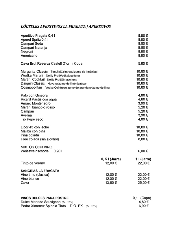 En Sa Fragata te ofrecemos una carta variada con opciones para todos los gustos, elaborada con productos frescos y de calidad.